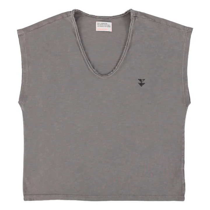 - T-shirt sans manche en coton flammé encolure ronde profonde impression dos impression d un petit logo sur la poitrine